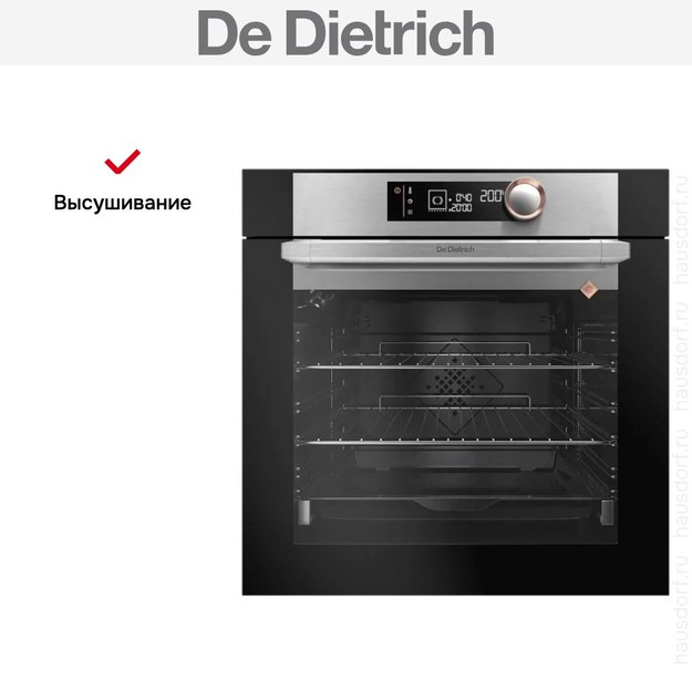Интернет-магазин «Хаусдорф» предлагает ознакомиться со всеми характеристиками духового шкафа De Dietrich DOE7340X на странице товара и купить его онлайн с бесплатной доставкой и подключением. Предлагаем также опцию самовывоза, бесплатного хранения на складе, супербыстрой доставки за дополнительную плату.