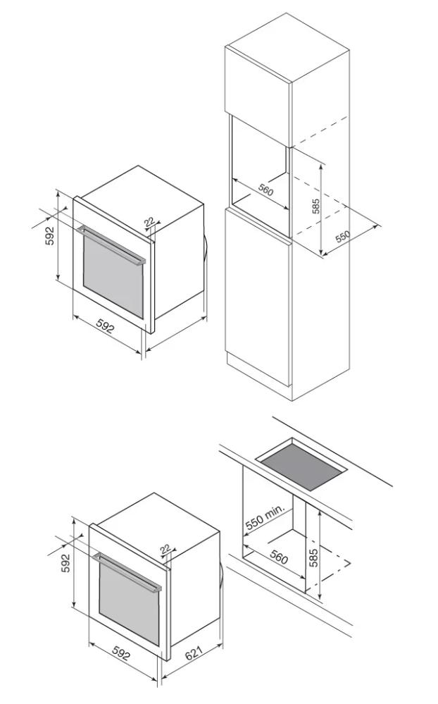 Ко всем моделям прилагаются подробные инструкции по установке, где указаны точные размеры ниши для каждой конкретной духовки.