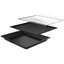 В стандартную комплектацию любого духового шкафа входят один или два противня — эмалированных или с антипригарным покрытием — и решетка. Единственный противень, как правило, имеет низкие бортики и предназначается для приготовления выпечки. Если духовка комплектуется двумя противнями, то второй отличается более высокими бортиками — его можно использовать для запекания мяса, птицы, овощных блюд. На решетке в духовке, не оснащенной грилем, обычно устанавливаются формы для запекания — стальные, керамические или стеклянные. В духовках премиум-класса количество противней может быть увеличено: к стандартному комплекту добавляются противни с перфорацией для мяса, специальные поддоны для сбора выделившегося сока.