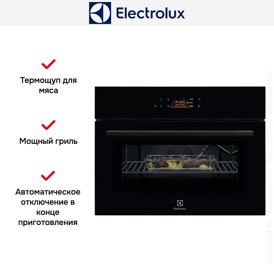 Количество режимов работы в духовом шкафу Электролюкс: 17. В число доступных программ входят: классический нагрев, нижний нагрев, приготовление с помощью микроволн, гриль для создания хрустящей корочки, пицца, сушка для овощей и фруктов, и другие. Помимо основных программ воспользуйтесь специальными возможностями этого прибора: размораживанием продуктов, чтобы сократить время на подготовку; подогревом посуды для настоящей ресторанной сервировки; опцией автоматического поднятия теста; быстрым разогревом для ускорения работы; поддержанием температуры в камере на определенном уровне, чтобы блюда не остывали; и другими. Тип гриля в этой модели — электрический.
