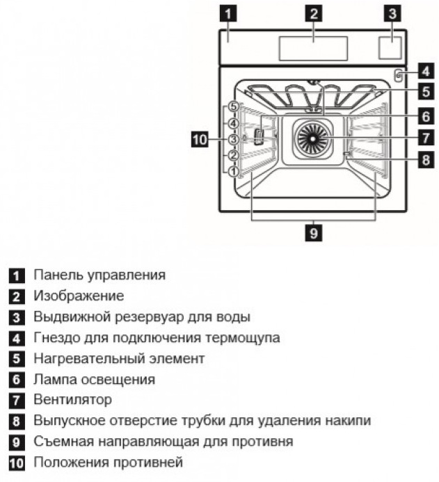 Элементы управления в духовом шкафу служат для включения и выключения прибора, установки температуры в камере, выбора режима и типа нагрева, задания времени приготовления, активации дополнительных функций — активации пара и микроволн, очистки камеры, отсрочки старта и многих других.