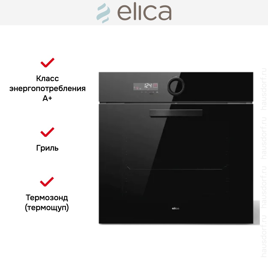 Количество режимов работы в духовом шкафу Элика: 9. В число доступных программ входят: классический нагрев, верхний нагрев, конвекция, гриль для создания хрустящей корочки, пицца, и другие. Тип гриля в этой модели — электрический.