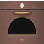 Особенности дизайна и внешней панели управления — также важный пункт при выборе духовки на кухню. В данной модели нужно обратить внимание на цвет — медь, Электронная панель управления позволяет быстро разобраться в настройке программ и не требует чрезмерных усилий.