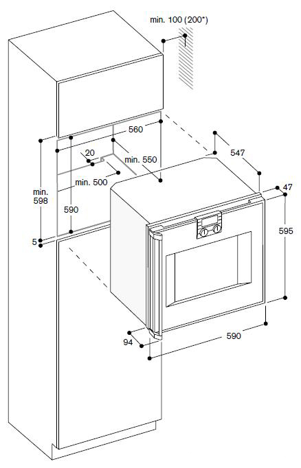 При установке духового шкафа в тумбу необходим также зазор между прибором и полом не менее 8–10 см. Если же она устанавливается в колонну, следует убедиться, что при открывании дверцы в лицо не будет ударять горячий воздух, а панель управления легко доступна. Кроме того, необходимо обеспечить свободный доступ ко всем розеткам и кабелям — они не должны размещаться непосредственно за задней стенкой духового шкафа.