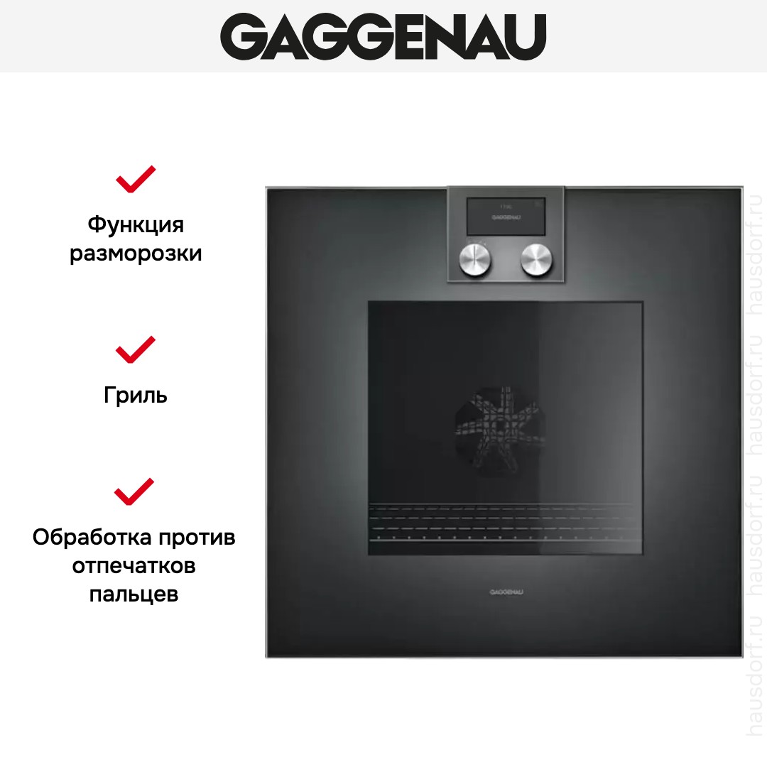 Количество режимов работы в духовом шкафу Гаггенау: 17. В число доступных программ входят: классический нагрев, верхний нагрев, нижний нагрев, конвекция, брожение, гриль для создания хрустящей корочки, пицца, и другие. Помимо основных программ воспользуйтесь специальными возможностями этого прибора: размораживанием продуктов, чтобы сократить время на подготовку; опцией автоматического поднятия теста; быстрым разогревом для ускорения работы; поддержанием температуры в камере на определенном уровне, чтобы блюда не остывали; и другими. Тип гриля в этой модели — электрический.