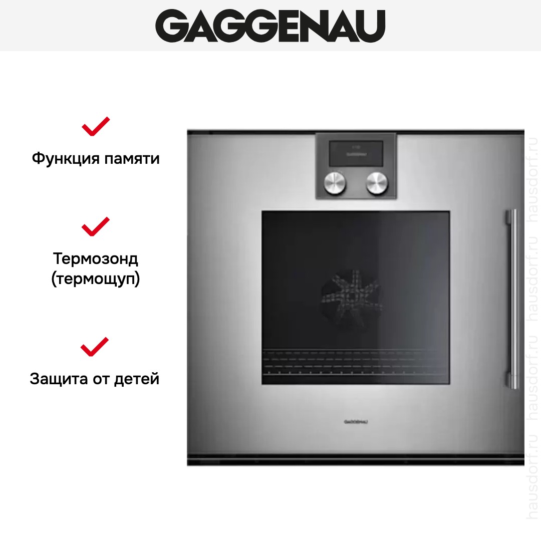 Количество режимов работы в духовом шкафу Гаггенау: 13. В число доступных программ входят: классический нагрев, верхний нагрев, нижний нагрев, конвекция, брожение, гриль для создания хрустящей корочки, пицца, и другие. Помимо основных программ воспользуйтесь специальными возможностями этого прибора: размораживанием продуктов, чтобы сократить время на подготовку; опцией автоматического поднятия теста; быстрым разогревом для ускорения работы; поддержанием температуры в камере на определенном уровне, чтобы блюда не остывали; и другими. Тип гриля в этой модели — электрический.