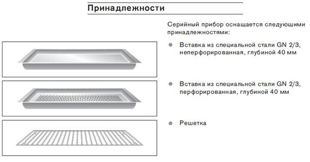 Следует различать общий и полезный объем духового шкафа. Полезный объем — место в камере, где можно разместить противни, решетки, вертел и посуду с готовящимся блюдом. Если общий объем полностью определяется шириной, высотой и глубиной камеры, то полезный уменьшается за счет расположения нагревательных элементов — гриля нескольких видов, вентилятора, кольцевого нагревательного элемента, магнетрона, системы парообразования, которые «съедают» свободное пространство.