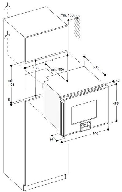 При установке духового шкафа в тумбу необходим также зазор между прибором и полом не менее 8–10 см. Если же она устанавливается в колонну, следует убедиться, что при открывании дверцы в лицо не будет ударять горячий воздух, а панель управления легко доступна. Кроме того, необходимо обеспечить свободный доступ ко всем розеткам и кабелям — они не должны размещаться непосредственно за задней стенкой духового шкафа.