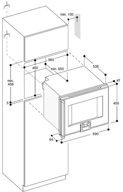При установке духового шкафа в тумбу необходим также зазор между прибором и полом не менее 8–10 см. Если же она устанавливается в колонну, следует убедиться, что при открывании дверцы в лицо не будет ударять горячий воздух, а панель управления легко доступна. Кроме того, необходимо обеспечить свободный доступ ко всем розеткам и кабелям — они не должны размещаться непосредственно за задней стенкой духового шкафа.