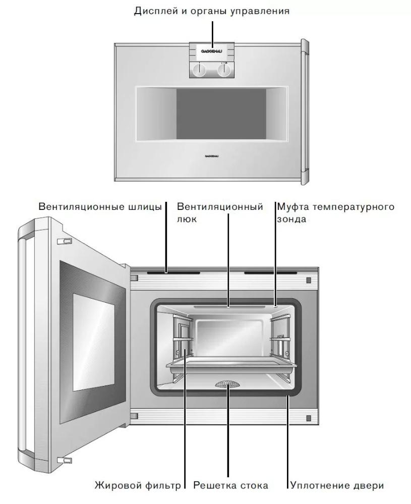 Следует различать общий и полезный объем духового шкафа. Полезный объем — место в камере, где можно разместить противни, решетки, вертел и посуду с готовящимся блюдом. Если общий объем полностью определяется шириной, высотой и глубиной камеры, то полезный уменьшается за счет расположения нагревательных элементов — гриля нескольких видов, вентилятора, кольцевого нагревательного элемента, магнетрона, системы парообразования, которые «съедают» свободное пространство.