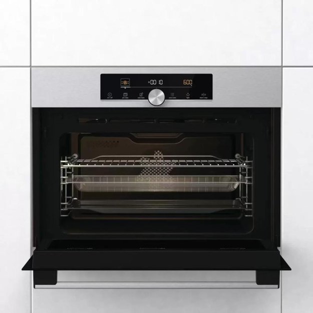 Готовьте свои лучшие блюда и пробуйте новые рецепты с духовым шкафом Gorenje BCM4547A10X! Стандартные размеры и большой объем внутренней камеры — выбор тех, кто много готовит для семьи или частых праздничных встреч с друзьями. Желательно заранее продумать расположение такой модели в кухонном гарнитуре.