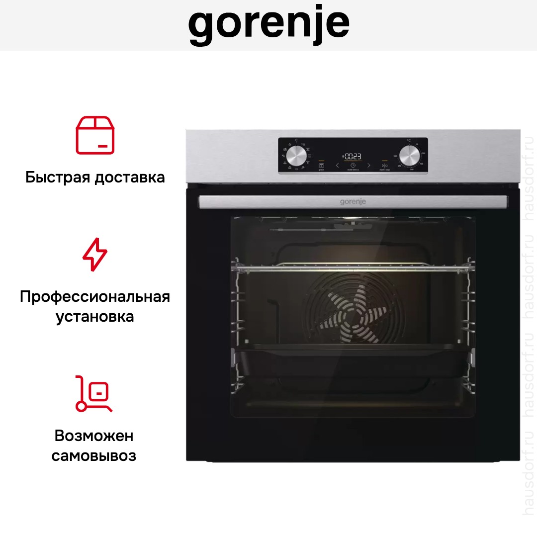 Готовьте свои лучшие блюда и пробуйте новые рецепты с духовым шкафом Gorenje BO6735E05X! Стандартные размеры и большой объем внутренней камеры — выбор тех, кто много готовит для семьи или частых праздничных встреч с друзьями. Желательно заранее продумать расположение такой модели в кухонном гарнитуре.