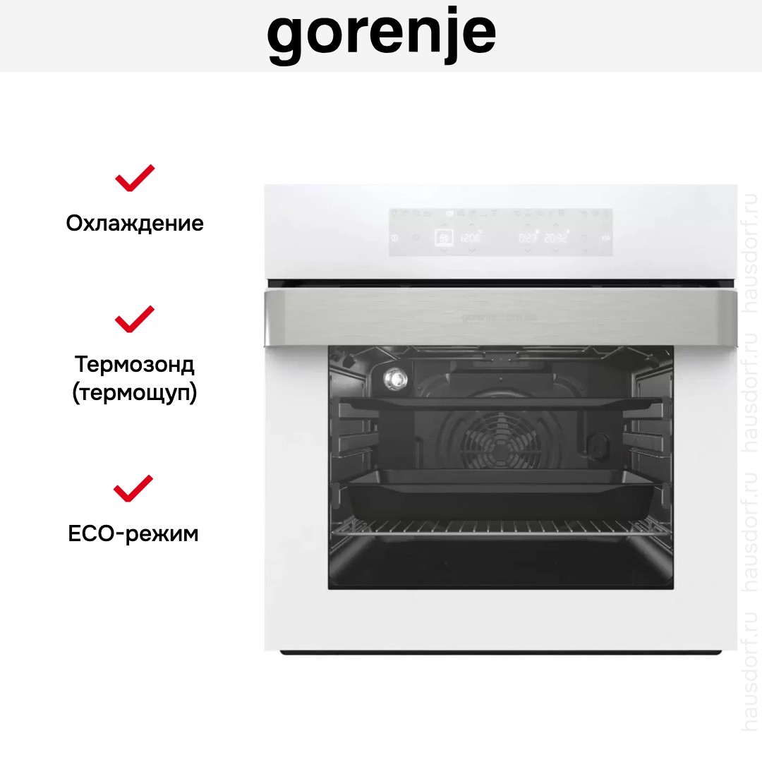 Готовьте свои лучшие блюда и пробуйте новые рецепты с духовым шкафом Gorenje BO758ORAW! Стандартные размеры и большой объем внутренней камеры — выбор тех, кто много готовит для семьи или частых праздничных встреч с друзьями. Желательно заранее продумать расположение такой модели в кухонном гарнитуре.