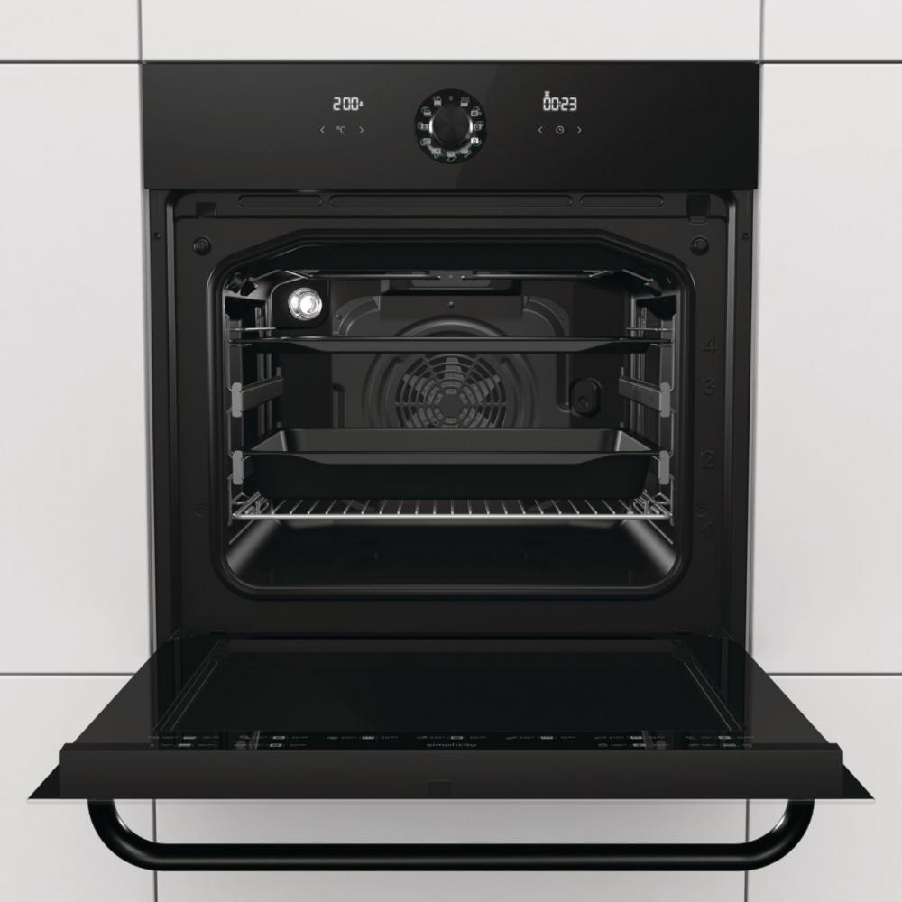Духовой шкаф Gorenje BO76SYB обеспечивает качественное приготовление блюд. Модель интегрируется в специальную нишу, поэтому гармонично вписывается в любой кухонный интерьер. Черный фасад имеет расширенные возможности для сочетания с различными цветовыми решениями и другой бытовой техникой. Устройство соответствует независимому типу установки, что увеличивает варианты для размещения прибора — нет необходимости в обязательном наличии варочной панели. Управление представлено сенсорными кнопками и поворотным регулятором для выбора режима нагрева. Вместительная камера, размером 71 литр, позволяет готовить объемные блюда или использовать сразу два противня. Благодаря равномерному распределению горячего воздуха обеспечивается идеальные результаты на любом уровне. Телескопические направляющие — одно из преимуществ устройства. Они легко выдвигаются вместе с посудой, исключая риск ее опрокидывания.