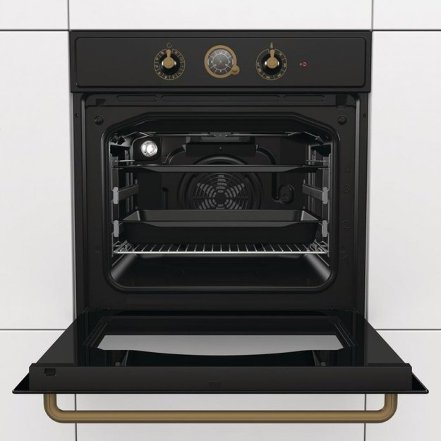 Готовьте свои лучшие блюда и пробуйте новые рецепты с духовым шкафом Gorenje BO7732CLB! Стандартные размеры и большой объем внутренней камеры — выбор тех, кто много готовит для семьи или частых праздничных встреч с друзьями. Желательно заранее продумать расположение такой модели в кухонном гарнитуре.