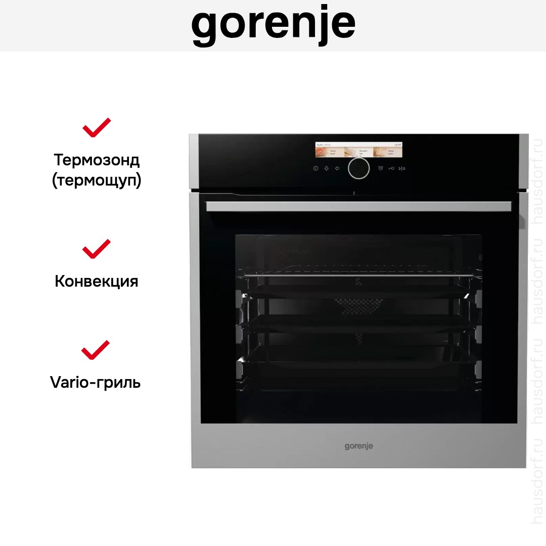 Готовьте свои лучшие блюда и пробуйте новые рецепты с духовым шкафом Gorenje BOP798S54X! Стандартные размеры и большой объем внутренней камеры — выбор тех, кто много готовит для семьи или частых праздничных встреч с друзьями. Желательно заранее продумать расположение такой модели в кухонном гарнитуре.
