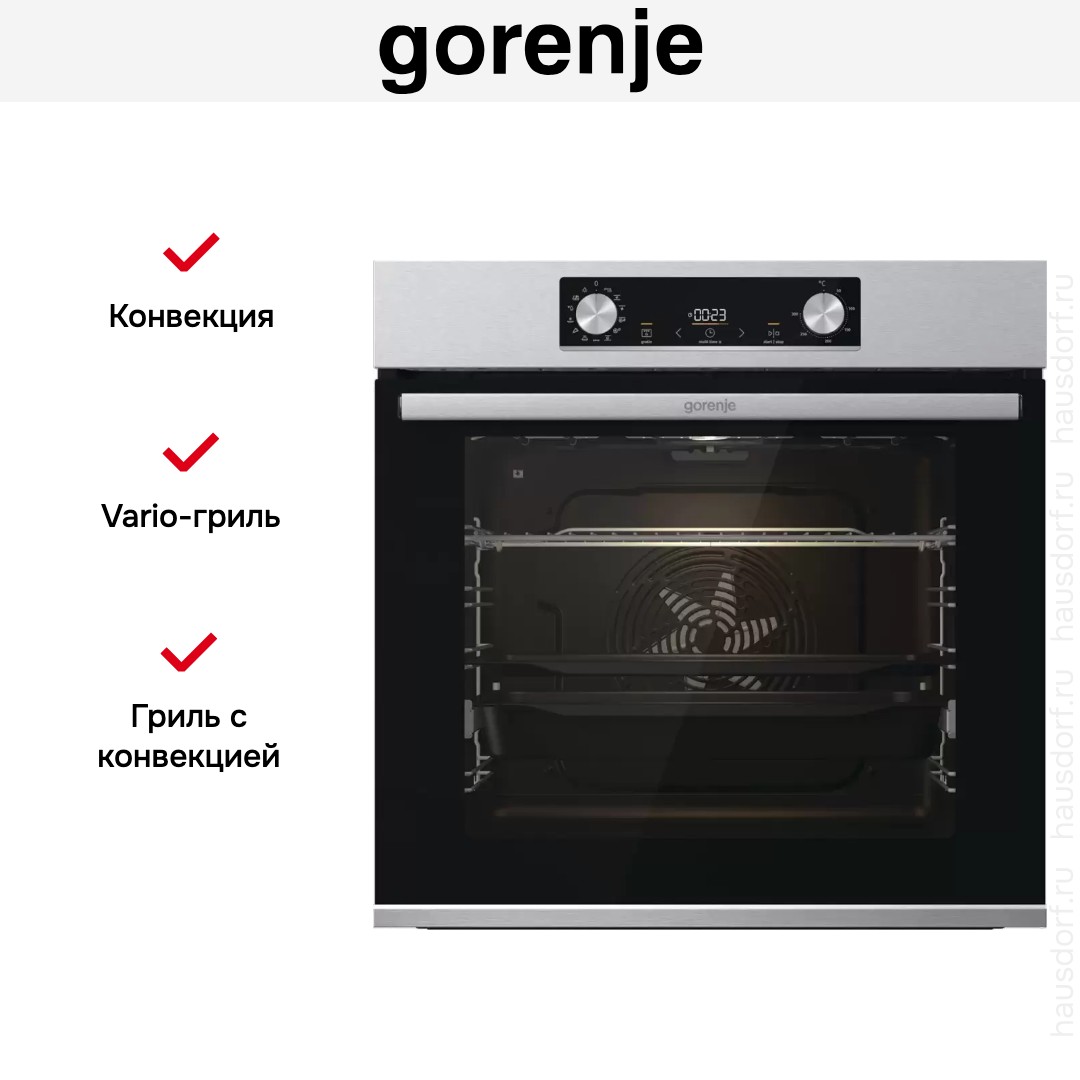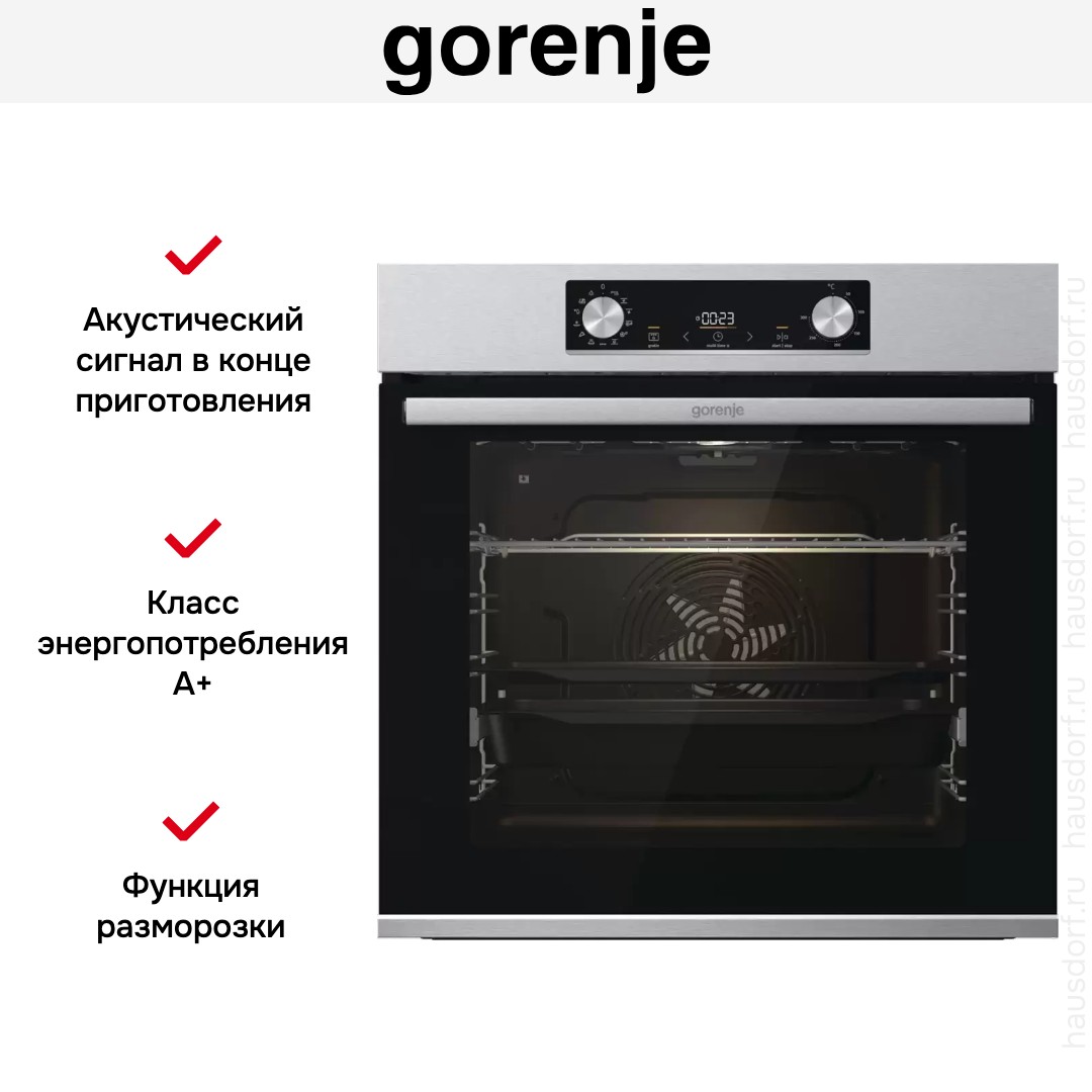 Готовьте свои лучшие блюда и пробуйте новые рецепты с духовым шкафом Gorenje BPS6737E14X! Стандартные размеры и большой объем внутренней камеры — выбор тех, кто много готовит для семьи или частых праздничных встреч с друзьями. Желательно заранее продумать расположение такой модели в кухонном гарнитуре.