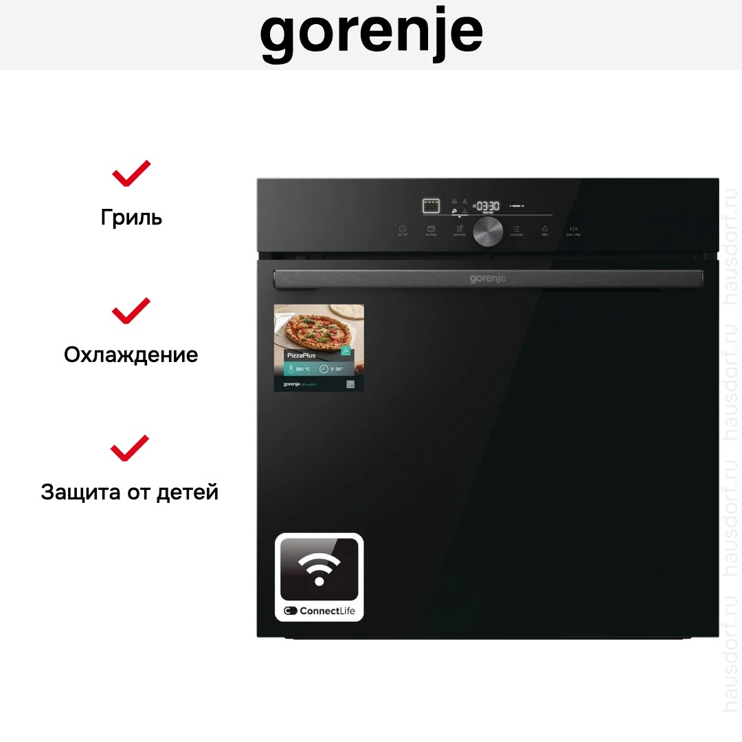 Духовой шкаф Gorenje GO66E Pizza350C — это независимая электрическая модель, разработанная для ценителей аутентичной итальянской кухни и тех, кто стремится к профессиональным результатам в домашних условиях. Устройство обладает стандартными габаритами — высотой и шириной по 59,5 см и глубиной 56,4 см, что обеспечивает лёгкую и точную интеграцию в большинство кухонных гарнитуров. При этом внутреннее пространство остаётся достаточно вместительным не только для пиццы, но и для разнообразных блюд — от хрустящей выпечки до сочных запеканок и крупных мясных композиций.