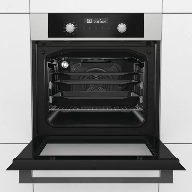 Готовьте свои лучшие блюда и пробуйте новые рецепты с духовым шкафом Gorenje Plus GO556X! Стандартные размеры и большой объем внутренней камеры — выбор тех, кто много готовит для семьи или частых праздничных встреч с друзьями. Желательно заранее продумать расположение такой модели в кухонном гарнитуре.
