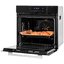 Особенности дизайна и внешней панели управления — также важный пункт при выборе духовки на кухню. В данной модели нужно обратить внимание на цвет — черный, охлаждение двери, чтобы поверхность и мебель вокруг не нагревались.