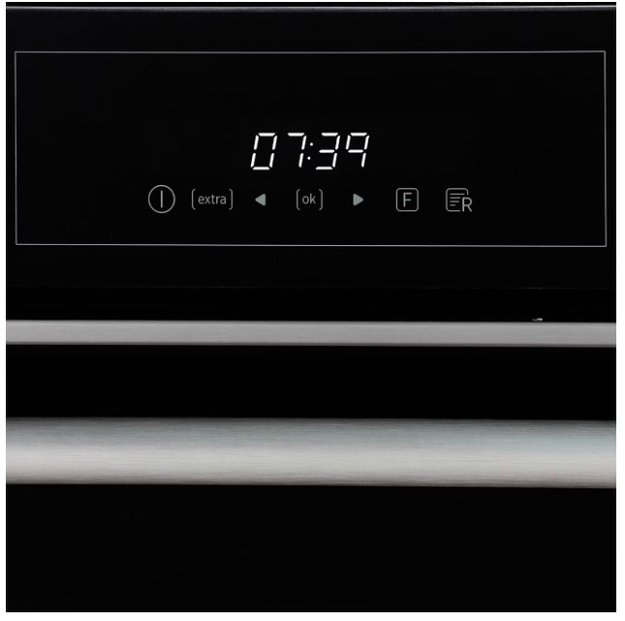 Особенности дизайна и внешней панели управления — также важный пункт при выборе духовки на кухню. В данной модели нужно обратить внимание на цвет — черный,