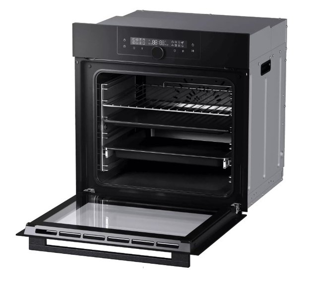 Особенности дизайна и внешней панели управления — также важный пункт при выборе духовки на кухню. В данной модели нужно обратить внимание на цвет — черный,