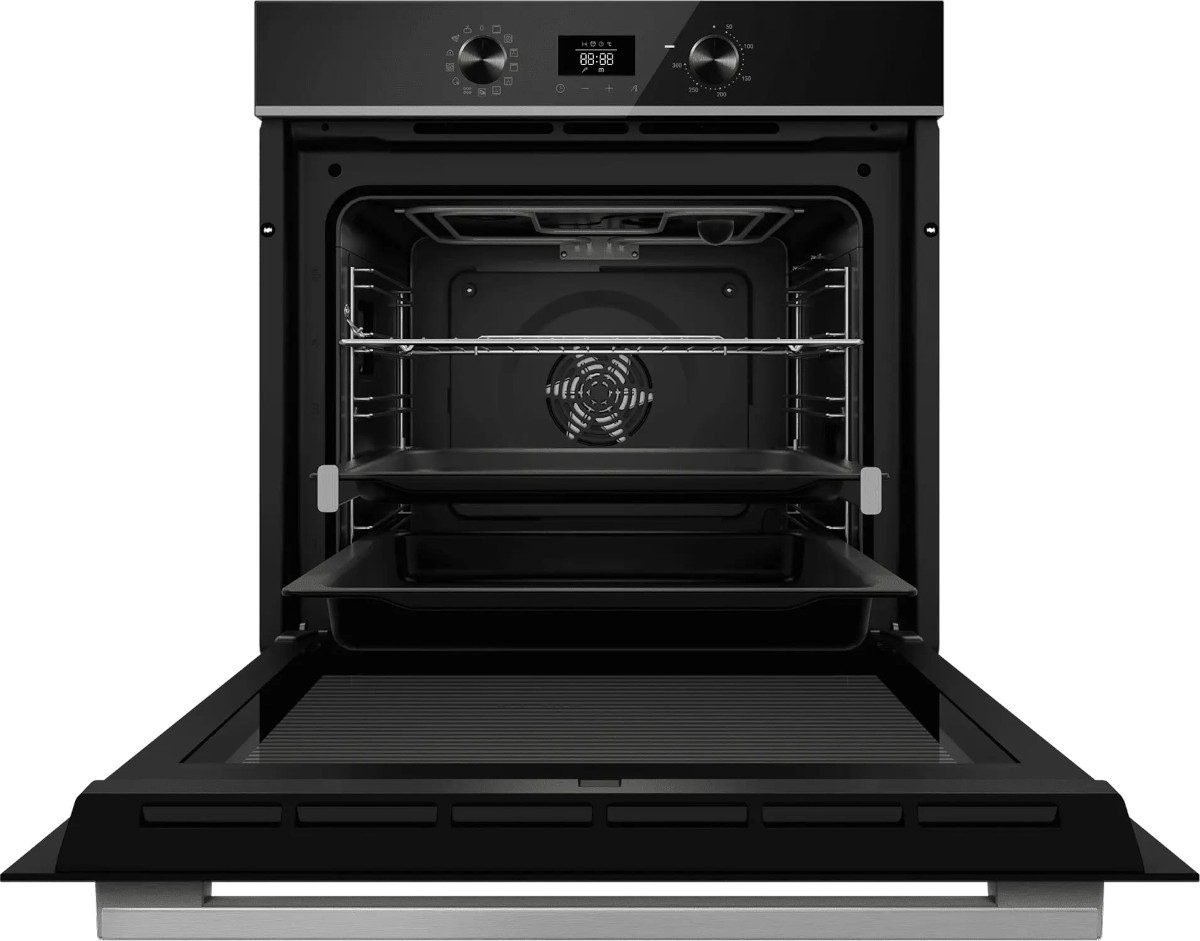 Особенности дизайна и внешней панели управления — также важный пункт при выборе духовки на кухню. В данной модели нужно обратить внимание на цвет — черный/нержавеющая сталь,