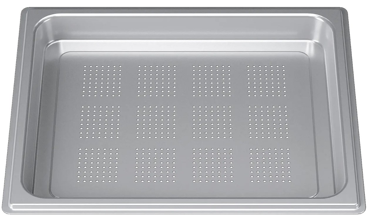В стандартную комплектацию любого духового шкафа входят один или два противня — эмалированных или с антипригарным покрытием — и решетка. Единственный противень, как правило, имеет низкие бортики и предназначается для приготовления выпечки. Если духовка комплектуется двумя противнями, то второй отличается более высокими бортиками — его можно использовать для запекания мяса, птицы, овощных блюд. На решетке в духовке, не оснащенной грилем, обычно устанавливаются формы для запекания — стальные, керамические или стеклянные. В духовках премиум-класса количество противней может быть увеличено: к стандартному комплекту добавляются противни с перфорацией для мяса, специальные поддоны для сбора выделившегося сока.
