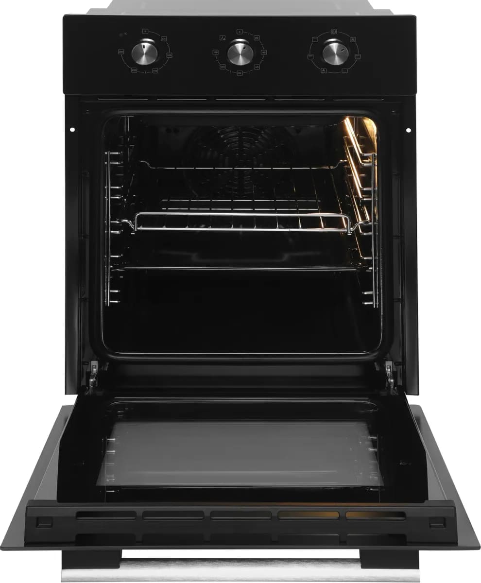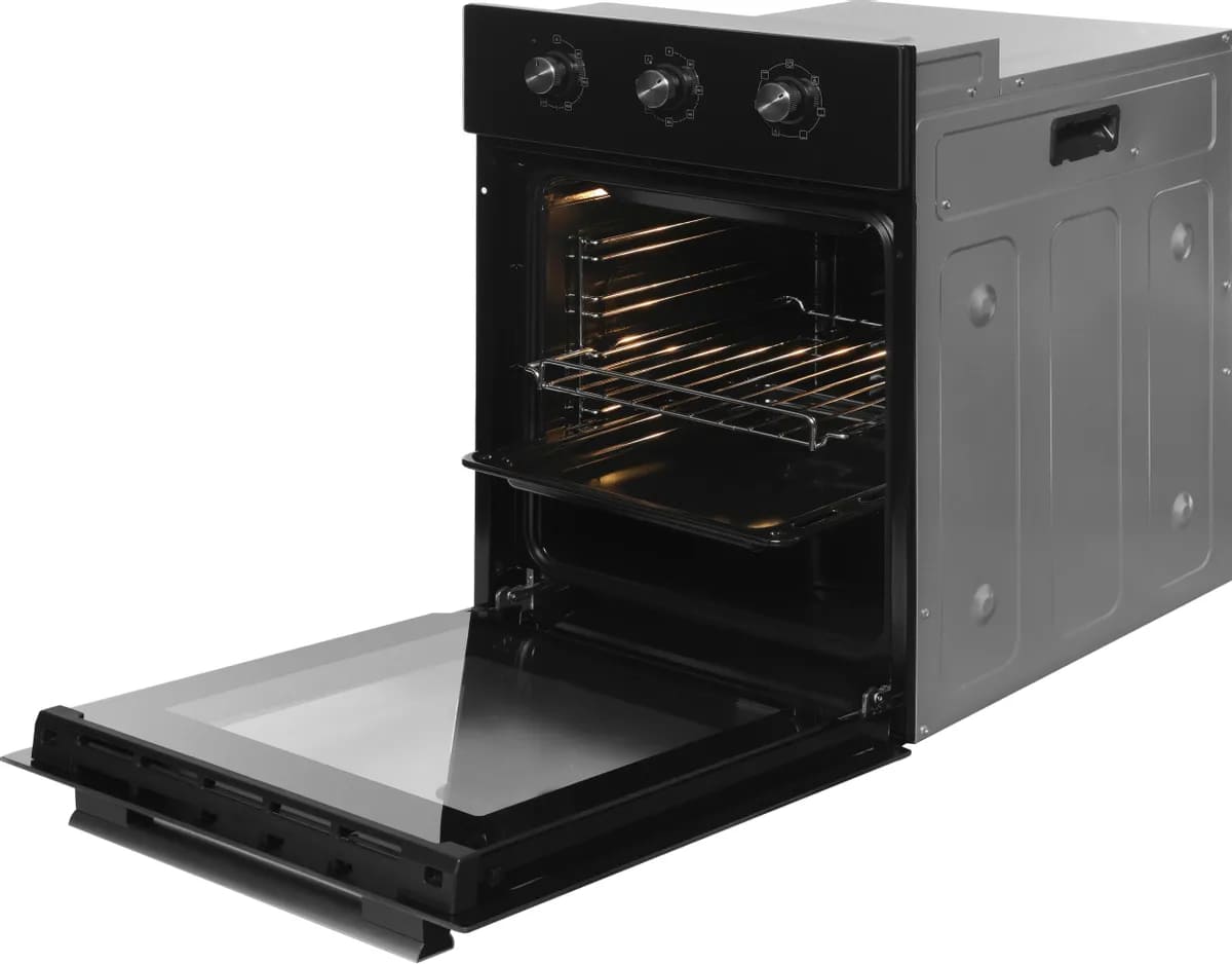 Как известно, стандартная ширина кухонной тумбы составляет около 60 см — поэтому за стандартную ширину встраиваемого духового шкафа принимают 59,5 см. Такие духовки имеют по 3–4 уровня приготовления, в них можно приготовить достаточно объемные блюда. Минимальное значение ширины духовки также соотносится с размерами тумбы для встраивания — оно составляет 44–45 см. Это хороший выбор для небольшой кухни, однако узкие духовые шкафы имеют свои недостатки — в частности, в них невозможно приготовить большой пирог или торт, запечь целый окорок, индейку или большую рыбу.