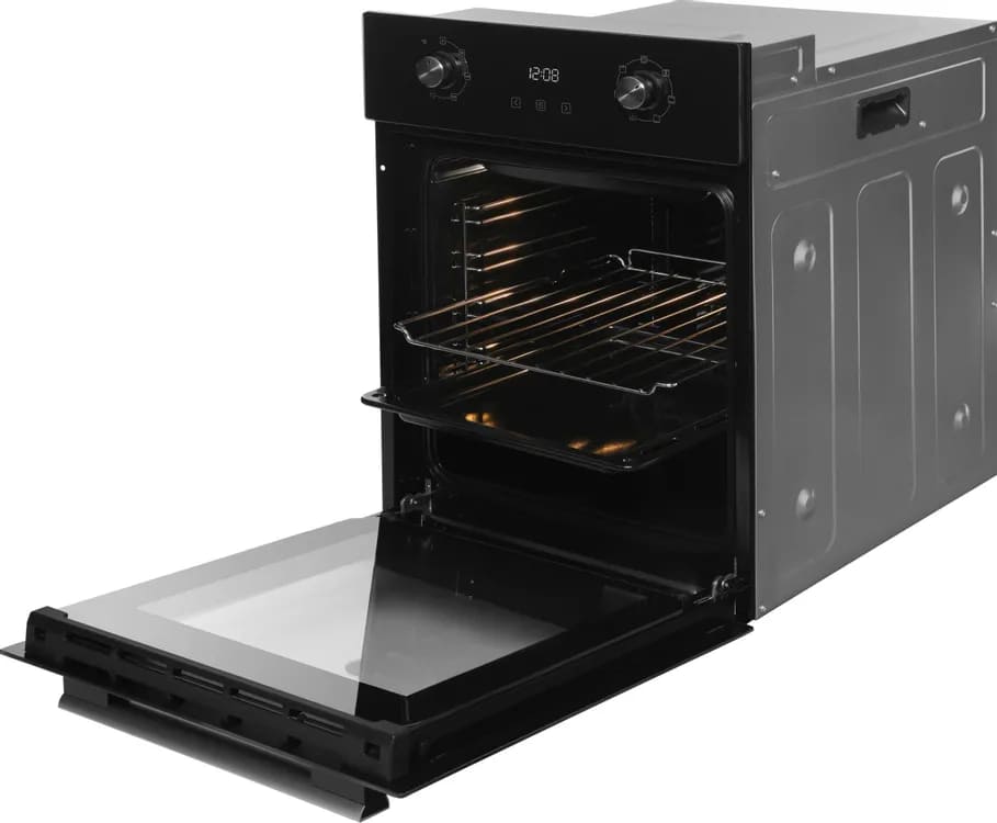 Как известно, стандартная ширина кухонной тумбы составляет около 60 см — поэтому за стандартную ширину встраиваемого духового шкафа принимают 59,5 см. Такие духовки имеют по 3–4 уровня приготовления, в них можно приготовить достаточно объемные блюда. Минимальное значение ширины духовки также соотносится с размерами тумбы для встраивания — оно составляет 44–45 см. Это хороший выбор для небольшой кухни, однако узкие духовые шкафы имеют свои недостатки — в частности, в них невозможно приготовить большой пирог или торт, запечь целый окорок, индейку или большую рыбу.