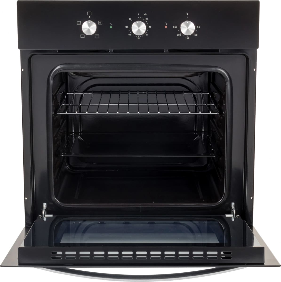 Особенности дизайна и внешней панели управления — также важный пункт при выборе духовки на кухню. В данной модели нужно обратить внимание на цвет — черный, Механическая панель управления позволяет быстро разобраться в настройке программ и не требует чрезмерных усилий.