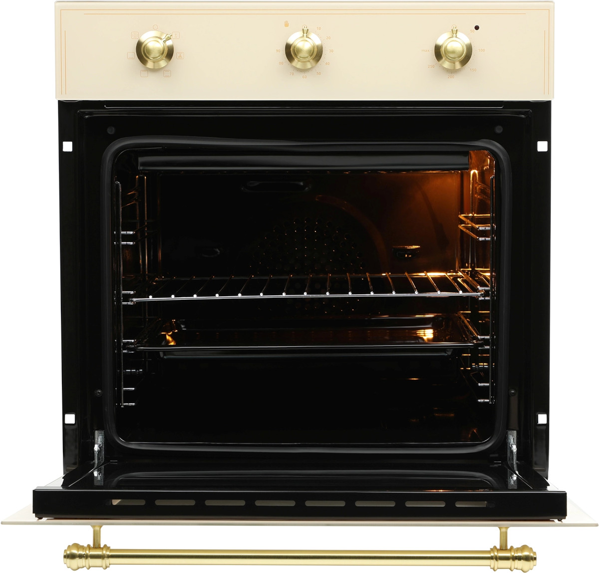 Популярными остаются и оттенки белого — например, цвет слоновой кости. Бежевый или кремовый фасад — находка для кухни в деревенском или ретро-стиле. Он также практичен и прост в уходе; нередко бежевые духовки дополняются фурнитурой из латуни или бронзы.