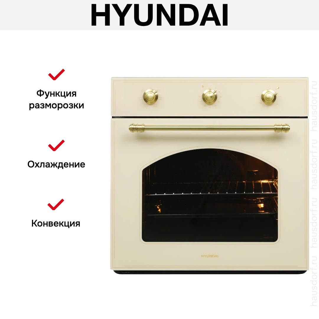 Количество режимов работы в духовом шкафу Хендай: 6. В число доступных программ входят: классический нагрев, верхний нагрев, нижний нагрев, конвекция, и другие. Помимо основных программ воспользуйтесь специальными возможностями этого прибора: размораживанием продуктов, чтобы сократить время на подготовку; и другими.