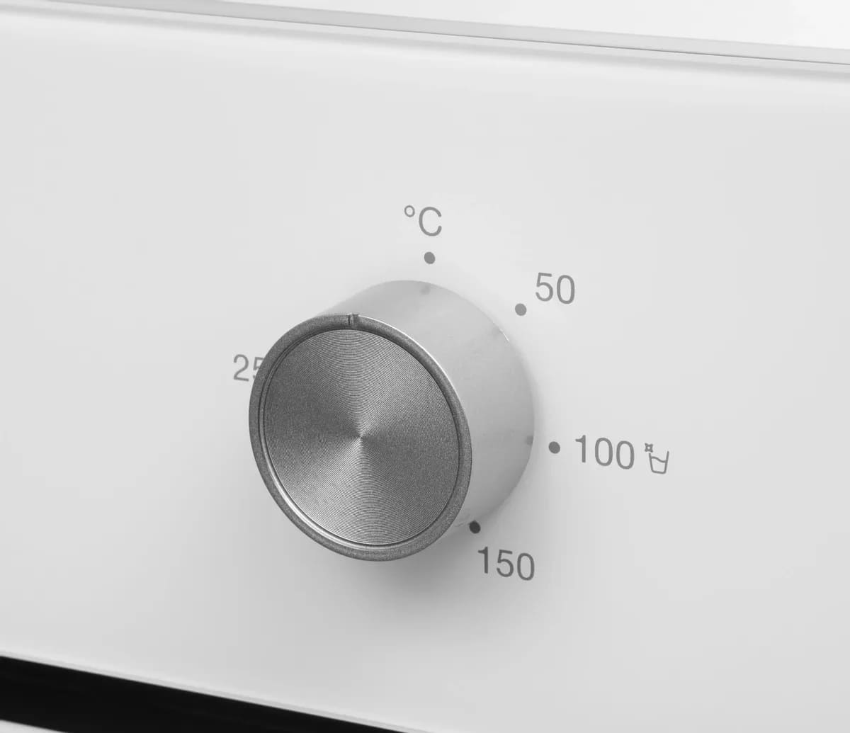 Особенности дизайна и внешней панели управления — также важный пункт при выборе духовки на кухню. В данной модели нужно обратить внимание на цвет — белый, Механическая панель управления позволяет быстро разобраться в настройке программ и не требует чрезмерных усилий.