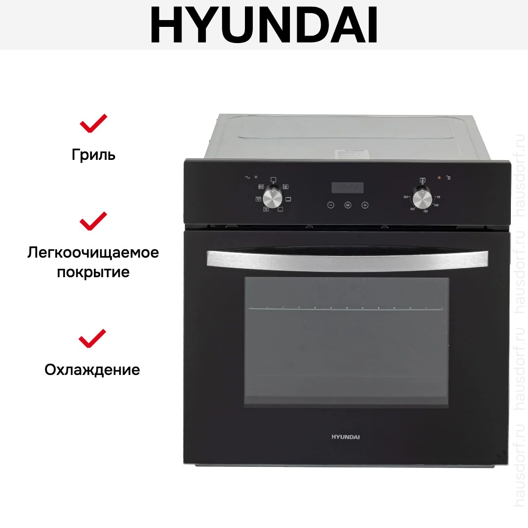 Количество режимов работы в духовом шкафу Хендай: 6. В число доступных программ входят: классический нагрев, нижний нагрев, конвекция, гриль для создания хрустящей корочки, и другие. Помимо основных программ воспользуйтесь специальными возможностями этого прибора: размораживанием продуктов, чтобы сократить время на подготовку; и другими.