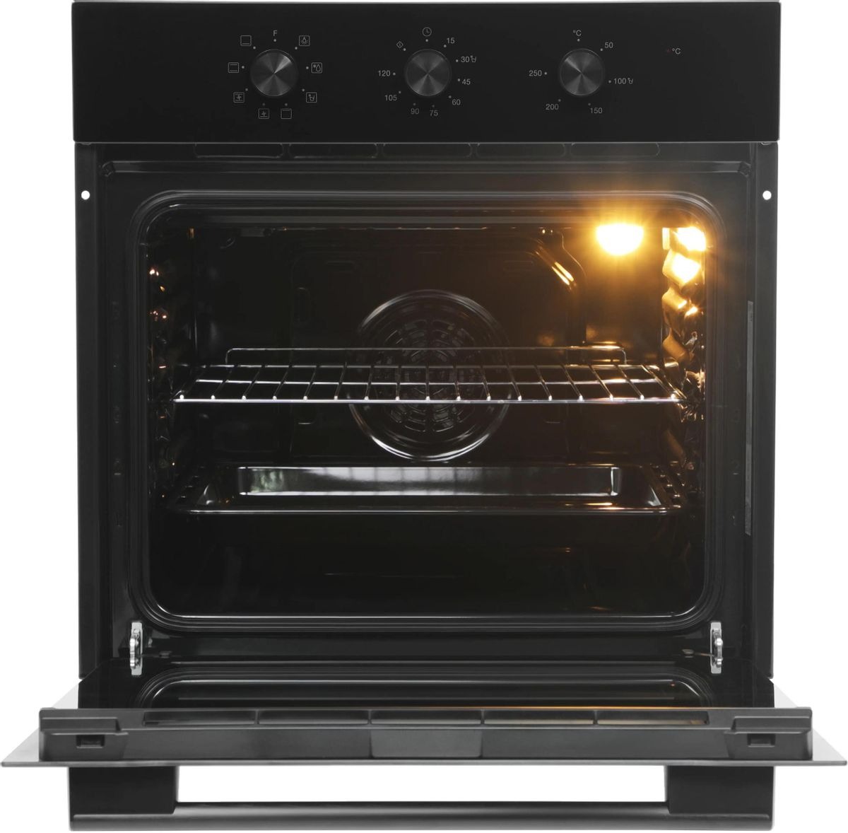 Глубина духовых шкафов, в отличие от их высоты и ширины, не отличается разнообразием. Стандартное значение составляет 54-55 см, что позволяет встраивать устройство в обычную кухонную тумбу или колонну глубиной 60 см так, чтобы оставалось достаточно места до задней стенки мебели или стены кухни для обеспечения нормальной вентиляции. В инструкциях по установке указывается, что это расстояние должно составить не менее 4–5 см. Объем такой духовки может быть равен от 50 до 70 литров.