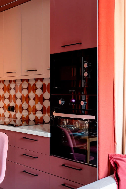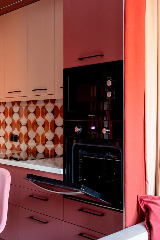 Наиболее распространенным решением является черный фасад духовки, нередко с деталями из металла — например, нержавеющей стали. Этот вариант чаще всего выбирают, если кухня оформлена в современном стиле — хай-тек, минималистическом, техно. Следует помнить, что на черном лучше заметны загрязнения: брызги воды, отпечатки пальцев, разводы, так что эти фасады требуют тщательного ухода.