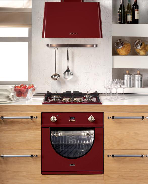 Цветные фасады духовок можно найти у таких производителей, как итальянские Smeg, ILVE, Restart, Bertazzoni, немецкие Kuppersberg и Kaiser. Эти фирмы предлагают духовки с фасадами красного, зеленого, синего, коричневого цветов с богатой и оригинальной фурнитурой, а также интересные варианты в цвете меди и платины.
