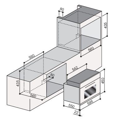 Размеры ниши для встраивания духового шкафа определяются, исходя из габаритов самого устройства. Стандартные модели обычно без труда устанавливаются в нишу шириной около 560 мм, высотой около 595 мм и глубиной примерно 550 мм. Следует помнить, что фасад устройства должен иметь большие размеры, чем величина ниши.