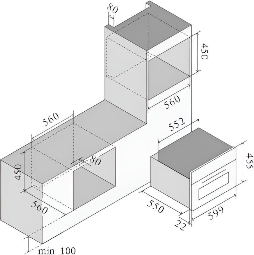 При установке требуется строго соблюдать правила техники безопасности — в частности, выдерживать размеры всех зазоров между стенками духовки и стенками мебели, необходимые для беспрепятственной циркуляции воздуха. Так, расстояние до боковых стенок мебели должно составлять не менее 0,5–1 см, а до задней стенки — не менее 4–5 см.