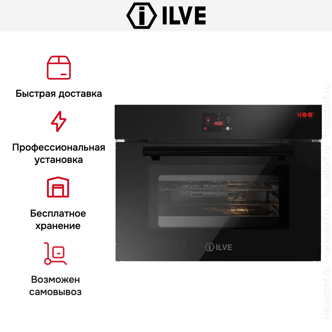 Количество режимов работы в духовом шкафу Илве: 16. В число доступных программ входят: конвекция, гриль для создания хрустящей корочки, пицца, и другие. Помимо основных программ воспользуйтесь специальными возможностями этого прибора: размораживанием продуктов, чтобы сократить время на подготовку; быстрым разогревом для ускорения работы; и другими. Тип гриля в этой модели — электрический.