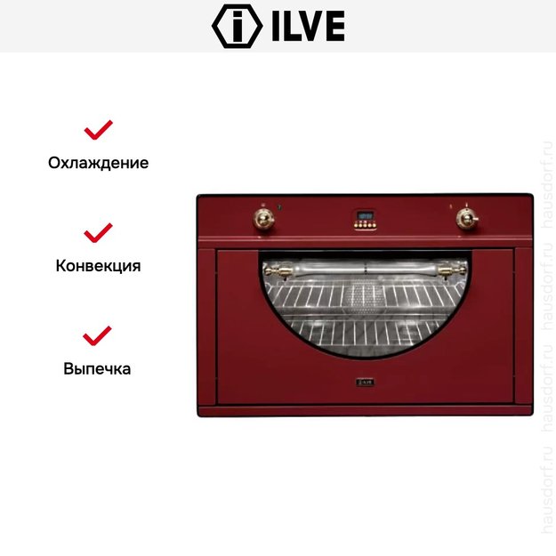 Цветные фасады духовок можно найти у таких производителей, как итальянские Smeg, ILVE, Restart, Bertazzoni, немецкие Kuppersberg и Kaiser. Эти фирмы предлагают духовки с фасадами красного, зеленого, синего, коричневого цветов с богатой и оригинальной фурнитурой, а также интересные варианты в цвете меди и платины.