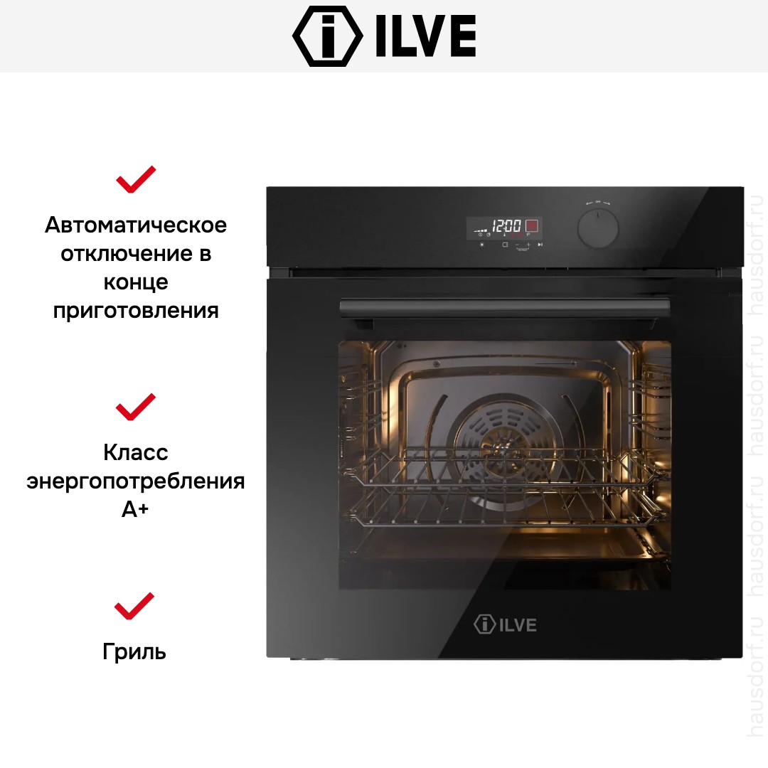 Количество режимов работы в духовом шкафу Илве: 10. В число доступных программ входят: классический нагрев, нижний нагрев, конвекция, гриль для создания хрустящей корочки, пицца, и другие. Помимо основных программ воспользуйтесь специальными возможностями этого прибора: быстрым разогревом для ускорения работы; и другими. Тип гриля в этой модели — электрический.