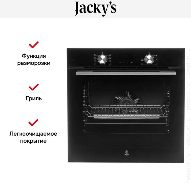 Количество режимов работы в духовом шкафу Джекис: 8. В число доступных программ входят: классический нагрев, нижний нагрев, конвекция, гриль для создания хрустящей корочки, и другие. Помимо основных программ воспользуйтесь специальными возможностями этого прибора: размораживанием продуктов, чтобы сократить время на подготовку; и другими. Тип гриля в этой модели — электрический.