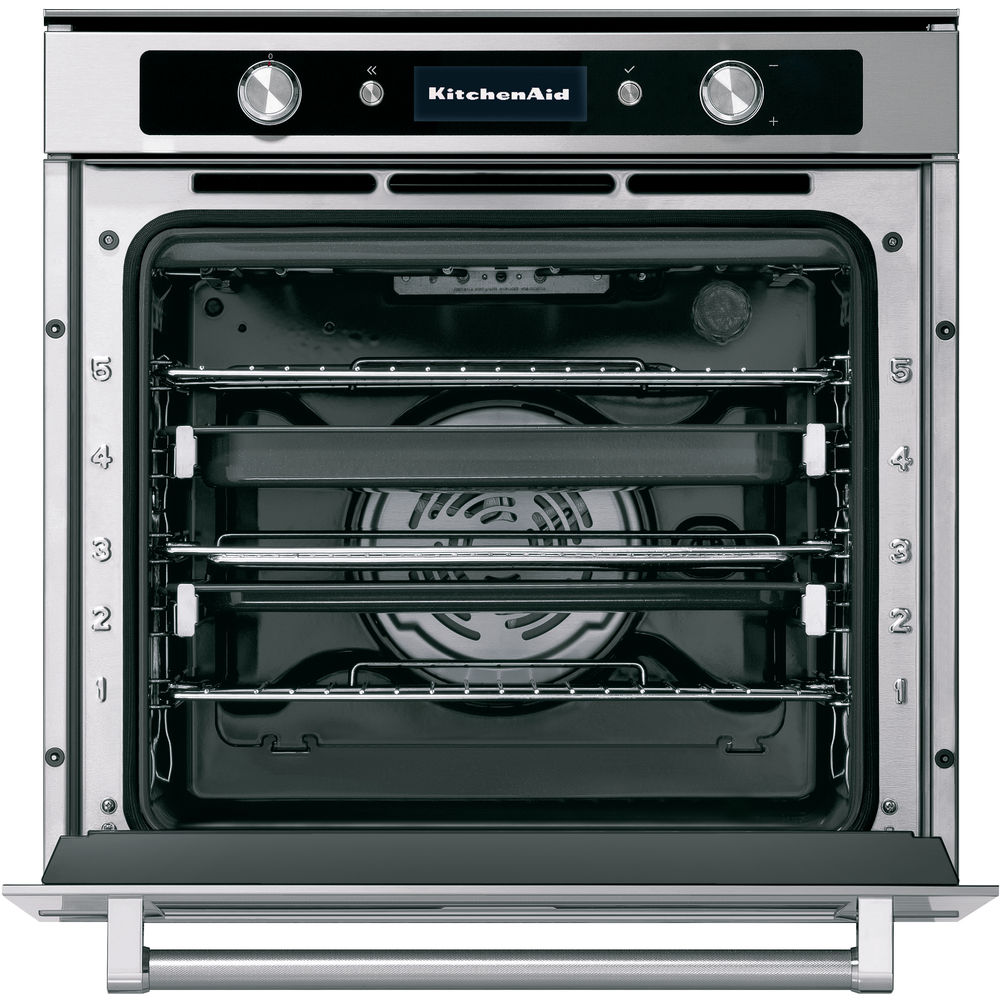 Многофункциональный духовой шкаф c 28 режимами приготовления. Внешняя поверхность из нержавеющей стали со специальным защитным покрытием, внутренняя камера с защитой от подгорания. Информативный ЖК дисплей и два эргономичных поворотных переключателя.
