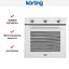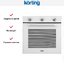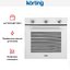 Духовой шкаф Korting OKB 1310 GSCW — независимая электрическая модель в белом оформлении Spectrum с серебристой фурнитурой, откидной дверцей и двойным стеклом, рассчитанная на установку в нишу размером 59×56×55 см; внешние габариты составляют 59.6×59.5×56.6 см, а внутренний объём — 72 л, что обеспечивает пять уровней для одновременного приготовления нескольких блюд.