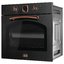 Korting OKB 481 CRCN — полноразмерная встраиваемая электрическая духовка из коллекции Calabria в стиле ретро. Модель представлена в матовом черном цвете с медной фурнитурой и фигурным стеклом в дверце. Стенки камеры объемом 64 литра покрыты изнутри эмалью легкой очистки. Духовка Кортинг OKB 481 CRCN имеет 8 режимов нагрева, в том числе горячий воздух, конвекцию, турбогриль. На механической панели управления находятся поворотные переключатели и аналоговые часы. Духовка оснащена таймером обратного отсчета с автоматическим отключением, термощупом и телескопическими направляющими на 2 уровнях.