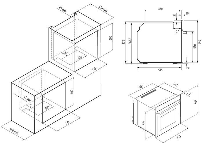 Ко всем моделям прилагаются подробные инструкции по установке, где указаны точные размеры ниши для каждой конкретной духовки.