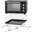 Духовки с грилем комплектуются противнями с рифленой поверхностью и усиленной решеткой из хромированной стали или нержавейки, на которую помещают мясо, птицу или овощи. Модели с грилем могут оснащаться вертелом для запекания больших кусков мяса, цельной птицы или рыбы, а также специальными держателями для продуктов. Иногда в комплект включаются также круглые противни и камни для выпечки хлеба или пиццы.