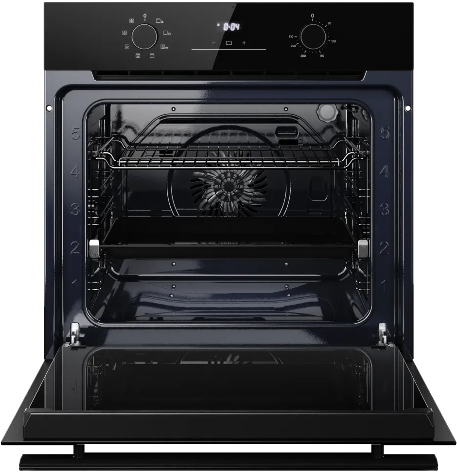 Особенности дизайна и внешней панели управления — также важный пункт при выборе духовки на кухню. В данной модели нужно обратить внимание на цвет — черный,